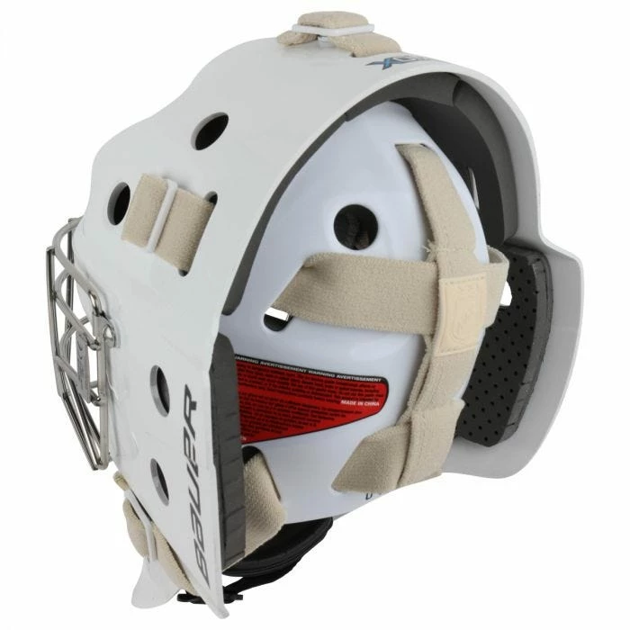 Rubatex foam is attached to a mechanically attached liner which when the cage comes unscrewed, the liner can be taken out and cleaned. The layering of padding has Ventilated VN foam in high impact zones through the forehead and ears. Partnered next to the Ventilated VN foam, Bauer’s use of Black Rubatex Foam is found in the crown, temples, chin cup and backplate. Lastly, Bauer has added their stock sweatband that helps keep the head cool, reduce the sweat buildup and keep sweat out of the goalies eyes.
